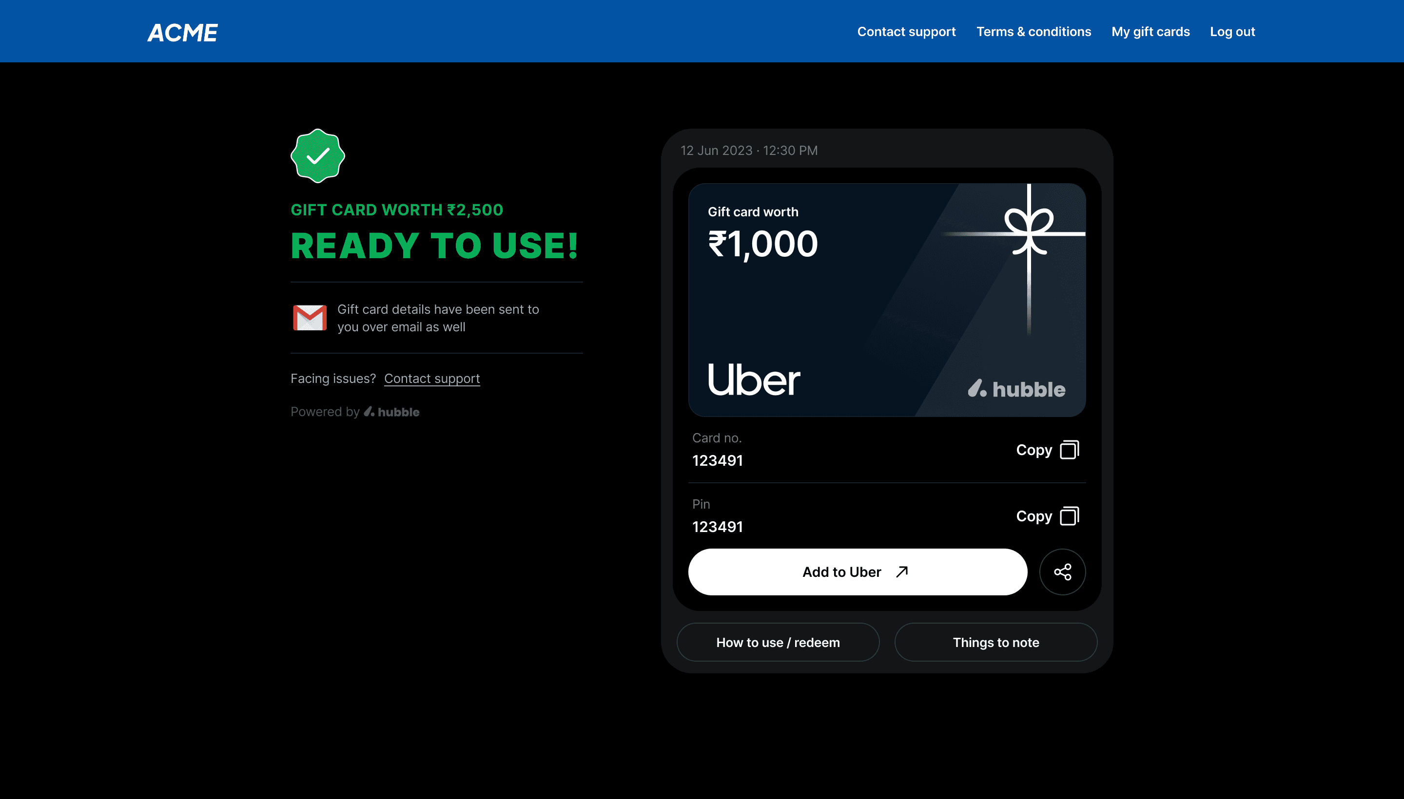 Send it to your consumers via Email, SMS, WhatsApp or your trusted channel; along with “How to redeem” instructions.