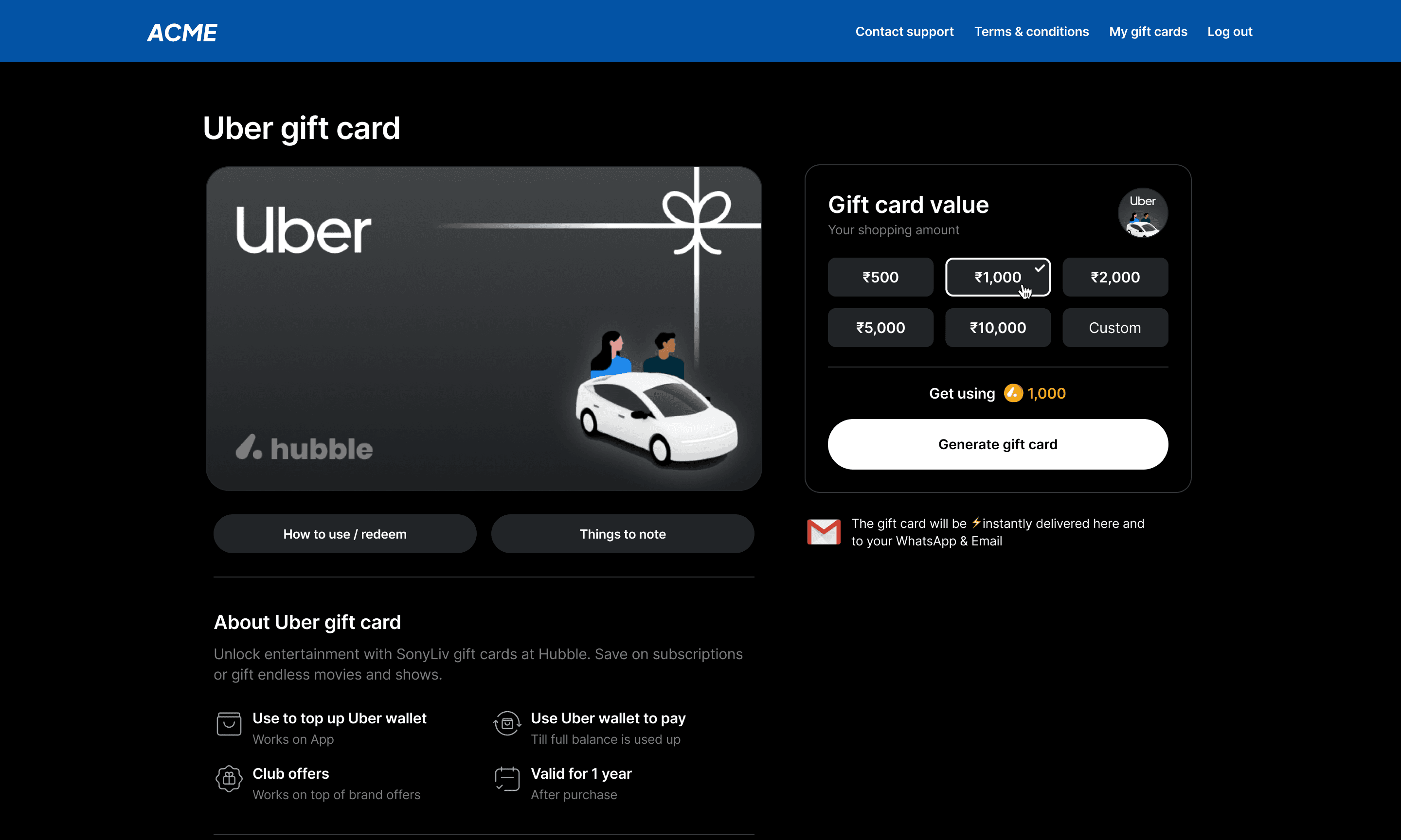 Share theme based brands like Travel, food, jewellery along with an amount for receiver to shop on curated brands.