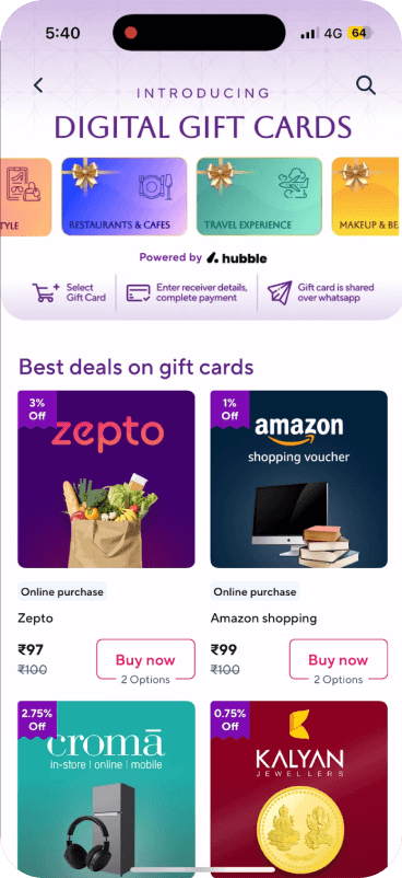We didn’t want to reinvent a gift card system. Hubble gave us the catalogue, reliability, and control, without losing ownership of our app experience.